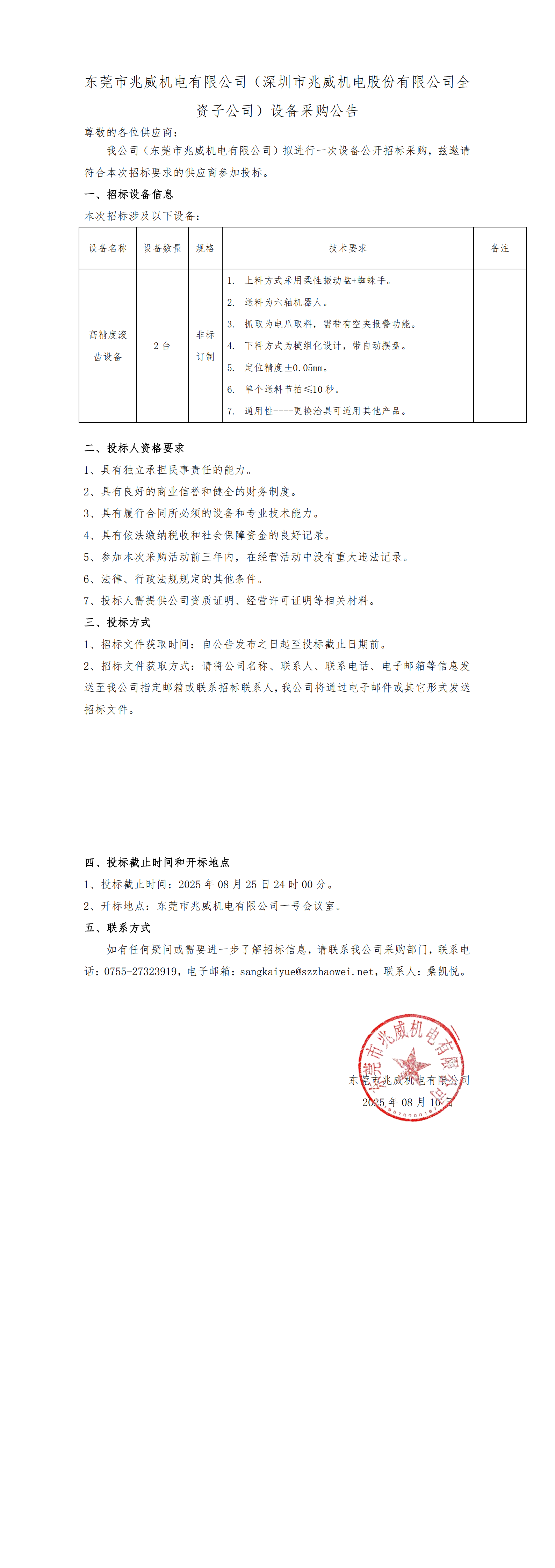 东莞市不朽情缘mg官网机电有限公司滚齿机设备采购公告 2025-08-10 11:00 相关推荐 2021年宝博会展台设计方案评审结果 2021中国国际信息展览会展台设计方案评审结果 设备采购招标公告 建设“深圳市智能机器人微型驱动控制系统工程研究中心”设备采购公告 东莞市不朽情缘mg官网机电有限公司设备采购公告 东莞市不朽情缘mg官网机电有限公司自动化设备采购公告 上一篇 东莞市不朽情缘mg官网机电有限公司自动化设备采购公告 下一篇 东莞市不朽情缘mg官网机电有限公司设备采购公告 推荐方案 电动自行车电子避震器微型齿轮箱解决方案 医疗胰岛素注射笔驱动系统应用 汽车空调出风口调节执行器应用 割草机器人电动滚筒执行器应用 电动夹爪驱动系统应用 最新动态 载誉前行!不朽情缘mg官网机电斩获第八届广东省政府质量奖 二十四载深耕微型驱动,不朽情缘mg官网机电以创新绘就微型驱动新蓝图 “聚力价值·兆就威来”不朽情缘mg官网机电2025年迎新春暨颁奖盛典圆满结束 不朽情缘mg官网机电荣获“2024深圳机器人年度评选”双奖,赋能行业技术创新 不朽情缘mg官网机电灵巧手亮相CES 2025,开启机器人技术新纪元 在线留言 MESSAGES 公司名(*): 姓名(*): 电话(*): 微信号: 详细需求: 验证码: ?? + 12 = 22